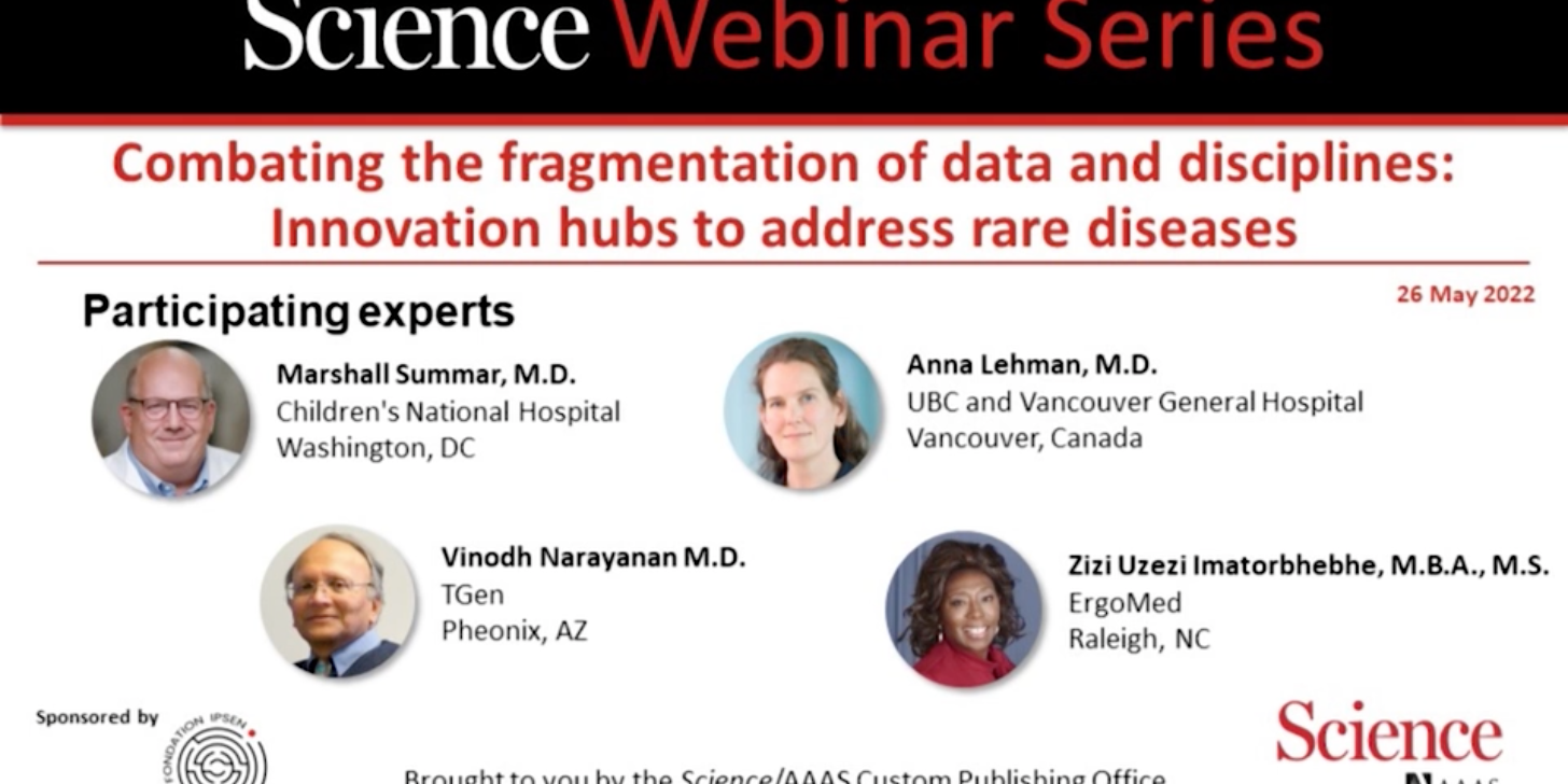 More information, as well as the link to the video recording of the webinar, can be found here: https://www.science.org/content/webinar/combating-fragmentation-data-and-disciplines-innovation-hubs-address-rare-diseases