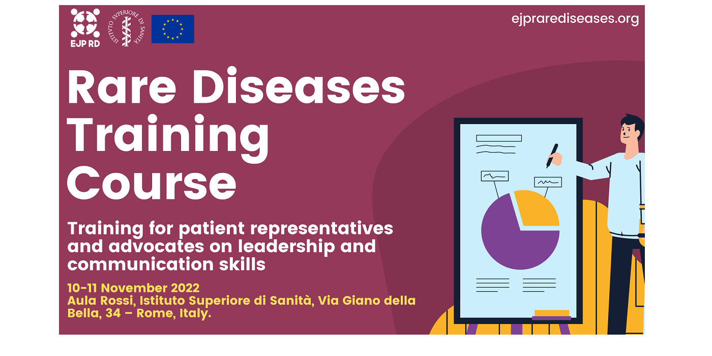 As part of the training activities proposed by EJP RD, an international course entitled « Training for patient representatives and advocates on leadership and communication skills » is a 2-day training programme organised by Istituto Superiore di Sanità (ISS) in close collaboration with EJP-RD task partners, open to patient representatives involved in the 24 European Reference Networks (ERNs), including members of the European Patients Advisory Groups (ePAGS), and other RD patient advocates.